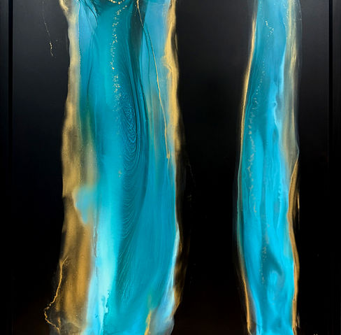 This series of contemporary paintings draws inspiration from the shifting shards of underwater light, emphasising fluid movement as the central force that animates each composition.
